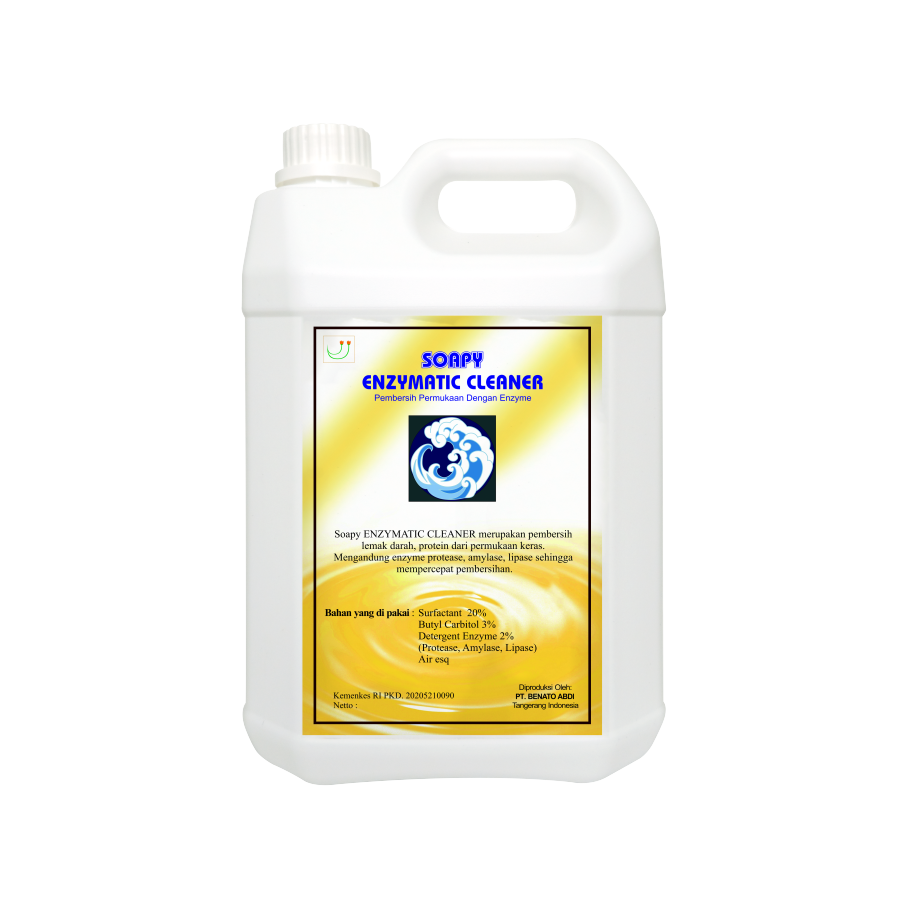 peralatan cuci otomatis lainnya). Formula cationic surfactant ditambah kandungan enzim protease, lipase, dan amilase dalam SOAPY ENZYMATIC CLEANER efektif mengemulsi dan memecah kotoran protein organik dan anorganik, residu,